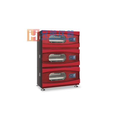 *4、下兩層為下翻式開門,第三層為上翻式開門,搖板可自由抽出,方便裝卸搖瓶,每層可獨立控制,各層可在不同溫度轉速下同時運轉或根據需要運轉任意一層。