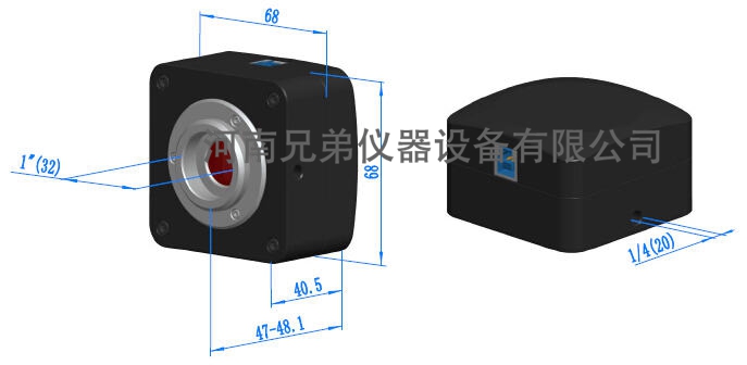 U3CCD系列C接口USB3.0 CCD相機尺寸示意圖 |