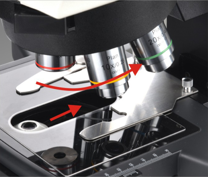 只需輕輕一按即可完成物鏡的切換。另外,還可以自定義兩個常用的放大倍率,只需輕輕一按此按鈕即可在這兩個物鏡之間切換。