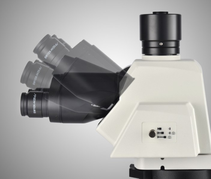 可調節目鏡角度(0°- 35°),可以通過三目鏡筒安裝相機、攝像頭。光路切換桿可以按照操作者習慣安裝在觀察筒任意一側。