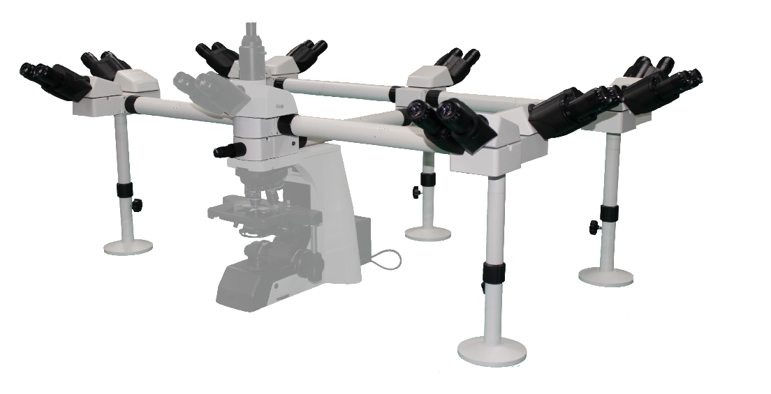 多人共覽顯微鏡系統在高校教學、實驗培訓和病理診斷上應用廣泛。Nexcope 共覽系列附件能夠進行2-10人的擴充。同時能保證顯微圖像不失真,圖像亮度不損失。配合教學頭和內置指示針,方便學習與診斷。