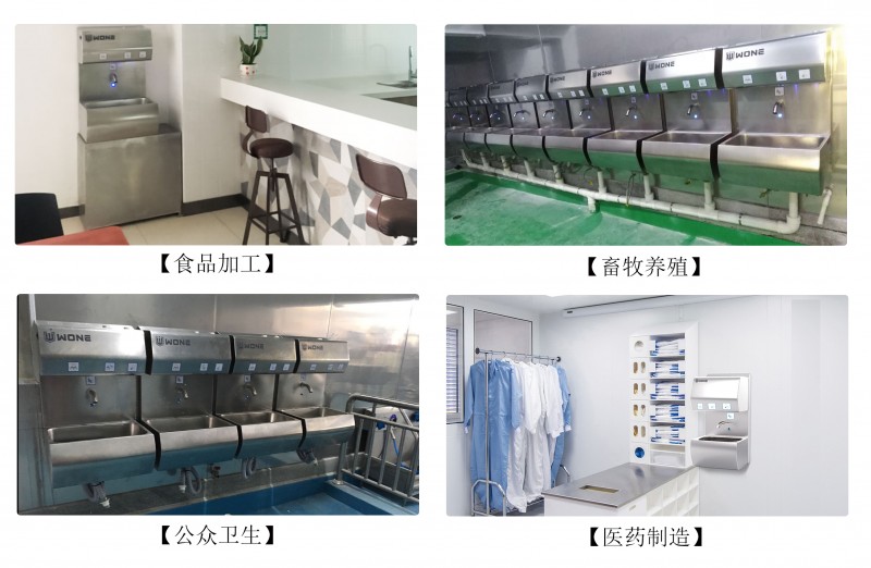 應用范圍廣,一體機具備的感應式無接觸洗手特別適合衛生要求高的食品加工、醫藥制造、醫療機構等行業。10秒快速暖風干手方便例如幼兒園、學校、餐廳、劇院等公眾區域的手部護理。特有的噴霧消毒功能有效提高食品加工、畜牧養殖、醫藥制造等行業人員的手部衛生標準。